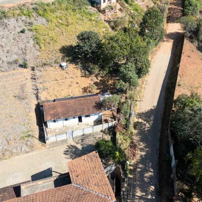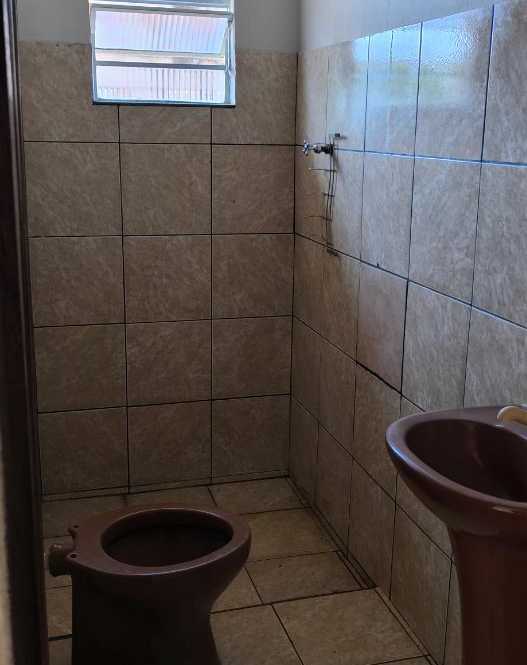 Uma casa simples de 2 quartos, um banheiro, cozinha, área serviço, fogão a lenha.